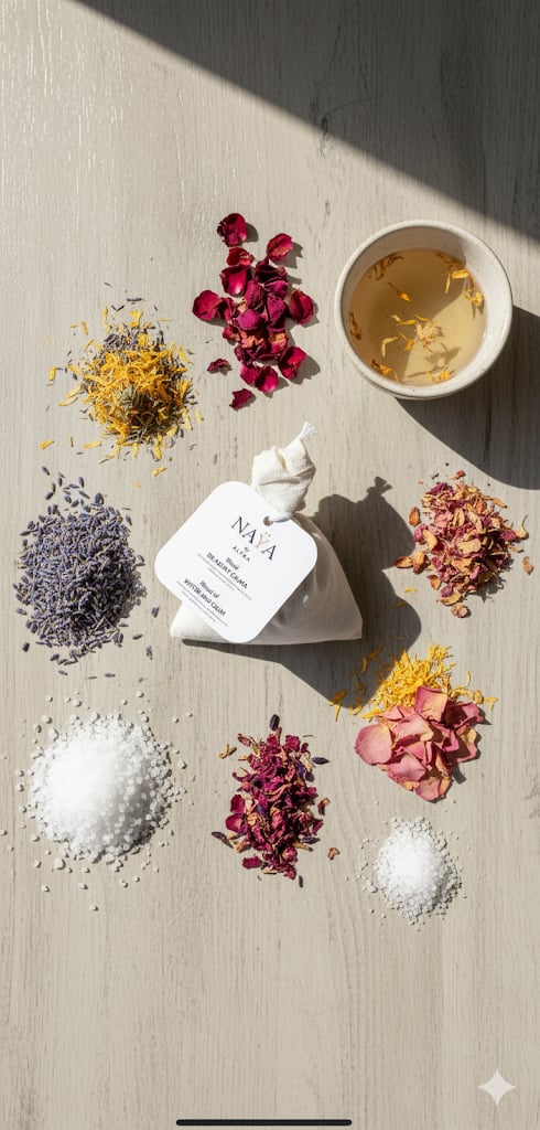 NAŸA – Saquito Sensorial de Baño ✨ Despierta tu esencia. Recuerda tu luz. NAŸA es más que un saquito de baño: es un ritual. Elaborado a mano con delicados botánicos como lavanda y pétalos de rosa, cada saquito está diseñado para transformar tu baño en una experiencia de spa. Colócalo directamente en agua tibia para liberar una suave infusión que calma la mente, relaja el cuerpo y te envuelve en un abrazo aromático. 🌿 Beneficios: • Promueve la relajación y el equilibrio emocional • Infunde el agua con un delicado aroma floral natural • Fórmula amigable con la piel, sin químicos agresivos • Sin desorden: el saquito mantiene los pétalos contenidos mientras disfrutas de la infusión ✨ Modo de uso: Coloca un saquito en tu bañera y deja que repose en el agua tibia. Para una experiencia más sensorial, aprieta suavemente el saquito para liberar su esencia. 💛 Cada NAŸA está hecho a mano con amor, diseñado para llevar serenidad y belleza a tu ritual de autocuidado. NAŸA – Sensory Bath Sachet ✨ Awaken your essence. Remember your light. NAŸA is more than a bath sachet — it’s a ritual. Handcrafted with delicate botanicals like lavender and rose petals, each sachet is designed to transform your bath into a spa-like experience. Place it directly in warm water to release a gentle infusion that calms the mind, soothes the body, and surrounds you with an aromatic embrace. 🌿 Benefits: • Promotes relaxation and emotional balance • Infuses your bath with a natural floral aroma • Skin-friendly blend, free of harsh chemicals • Mess-free: sachet keeps petals contained while you enjoy the infusion ✨ How to use: Drop one sachet into your bath and let it steep in the warm water. For a more sensorial experience, gently squeeze the sachet to release its essence. 💛 Every NAŸA is handmade with love, designed to bring serenity and beauty into your self-care ritual.